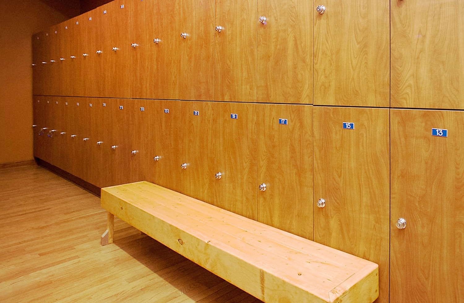 At check-in, staff provides guests with a wristband containing a key and locker number, along with their ID for the duration of the visit. Each guest receives a towel and gender-specific clothing, with extras available as needed. Guests store their belongings in their locker and change into the provided shirt and shorts.