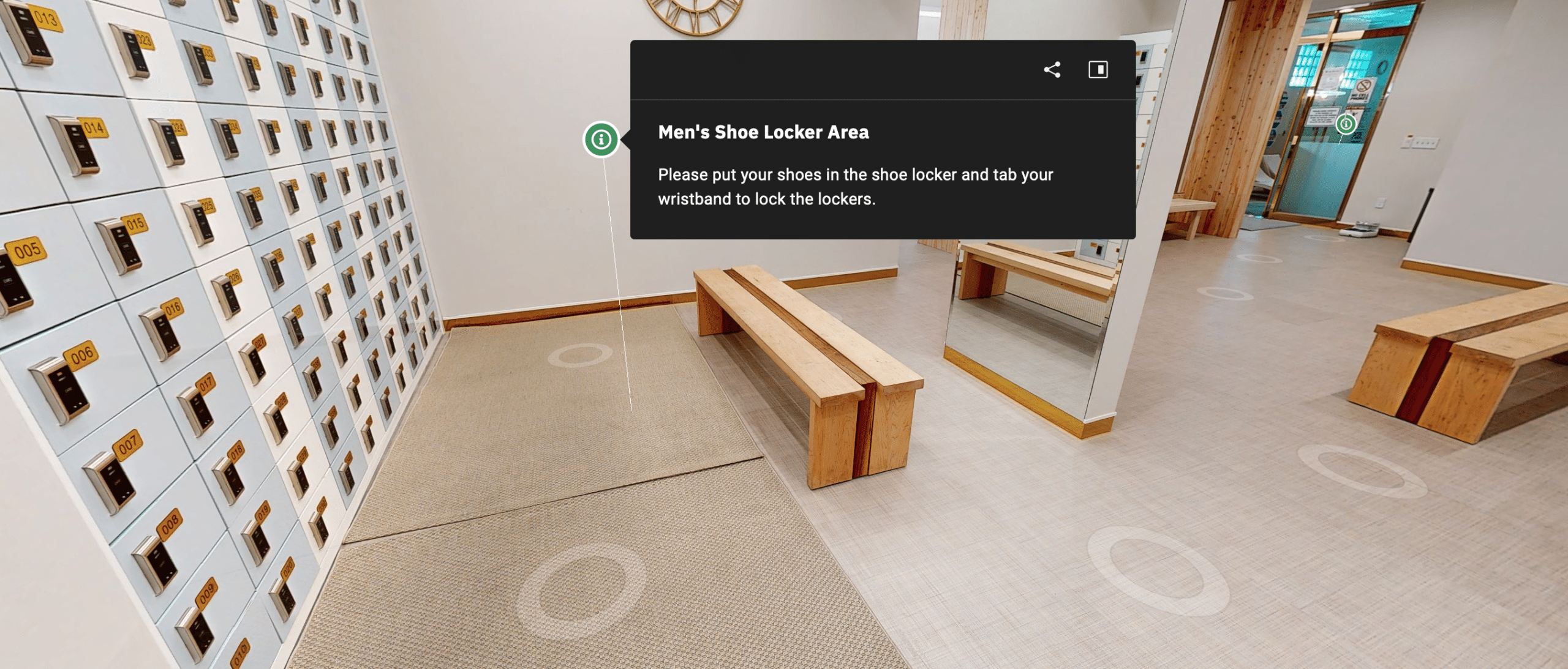 • Lockers: You’ll get a wristband for both a shoe locker and a personal locker.
